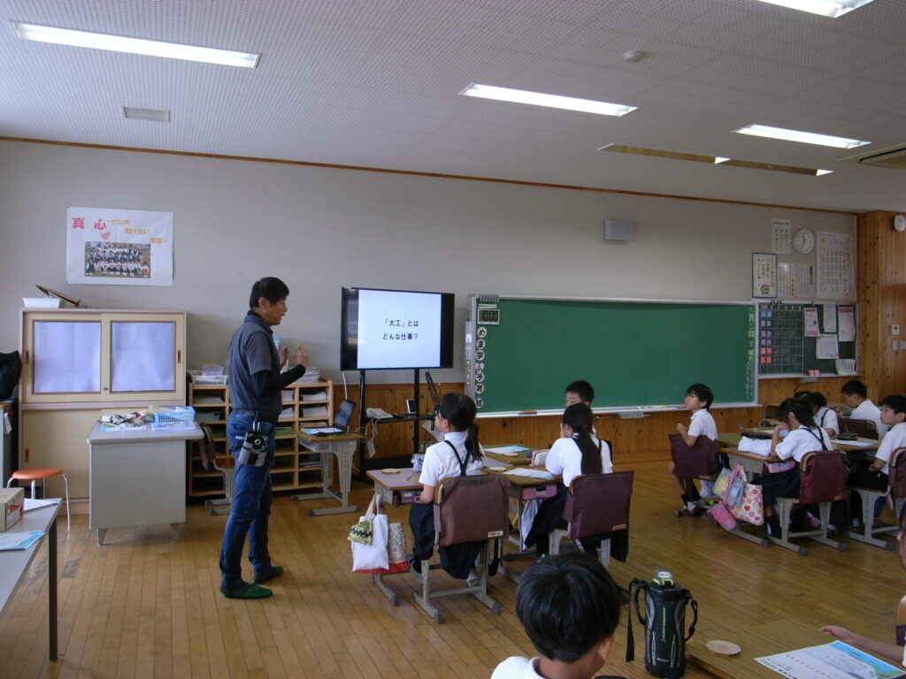 今回変更した点は、これまで一人で授業を行っていたところを、一緒に家づくりをしている大工さんと二人で授業に臨んだということです。